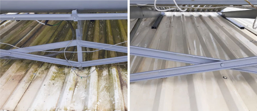 En segundo lugar, aplicamos a los techos nuestra tecnología Softwash de baja presión, evitando que la alta presión del hidrolavado quite la pintura actual. Además eliminamos de raíz todos los agentes y organismos vivos causantes del moho, algas y hongos que crecen y deterioran las superficies, si no se tratan a tiempo.