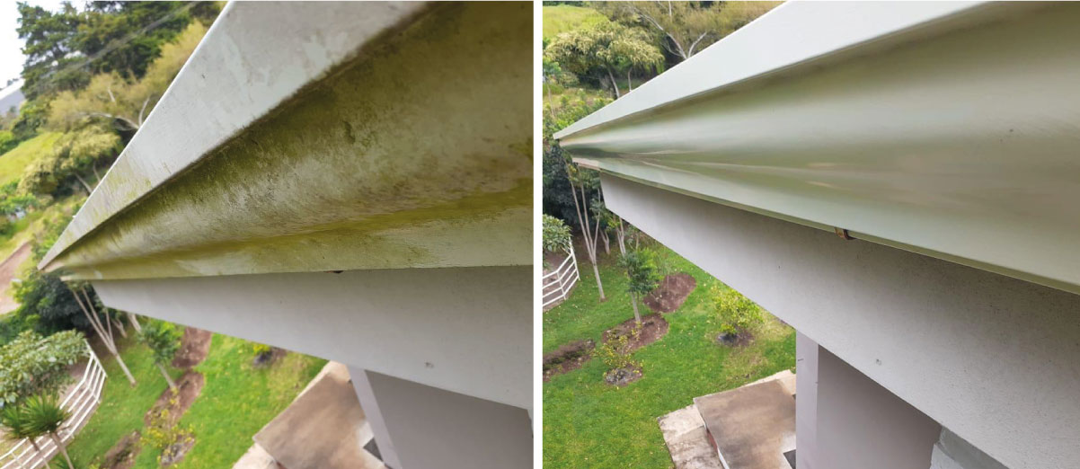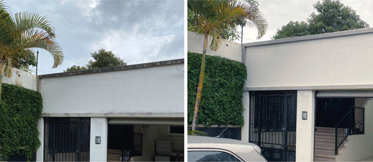 Ahora bien, generalmente pensamos en áreas muy expuestas o visibles, como paredes, pisos de terrazas, aceras y demás, sin embargo, hay muchas otras áreas que no son de fácil acceso para limpiar y en donde también se produce este tipo de manchas afectando la apariencia y belleza general de la propiedad, tales como: La parte exterior de las canoas, precintas, áreas de concreto alrededor de ventanas y columnas en general. A través de la fórmula y técnica que aplicamos con nuestra tecnología Softwash, solucionamos este problema de raíz, ya que primero eliminamos los organismos encargados de producir la suciedad y contaminación y luego aplicamos hidrolavado de baja presión, permitiendo que las superficies se mantengan en buen estado.